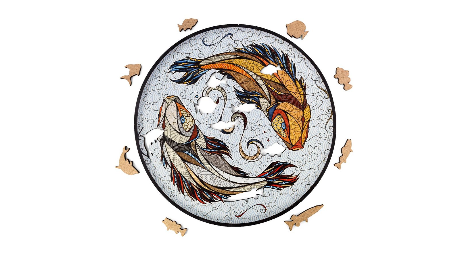 Krāsaina, klasiska koka puzle ar neparastu elementu formu, kas padara montāžas procesu vēl aizraujošāku.