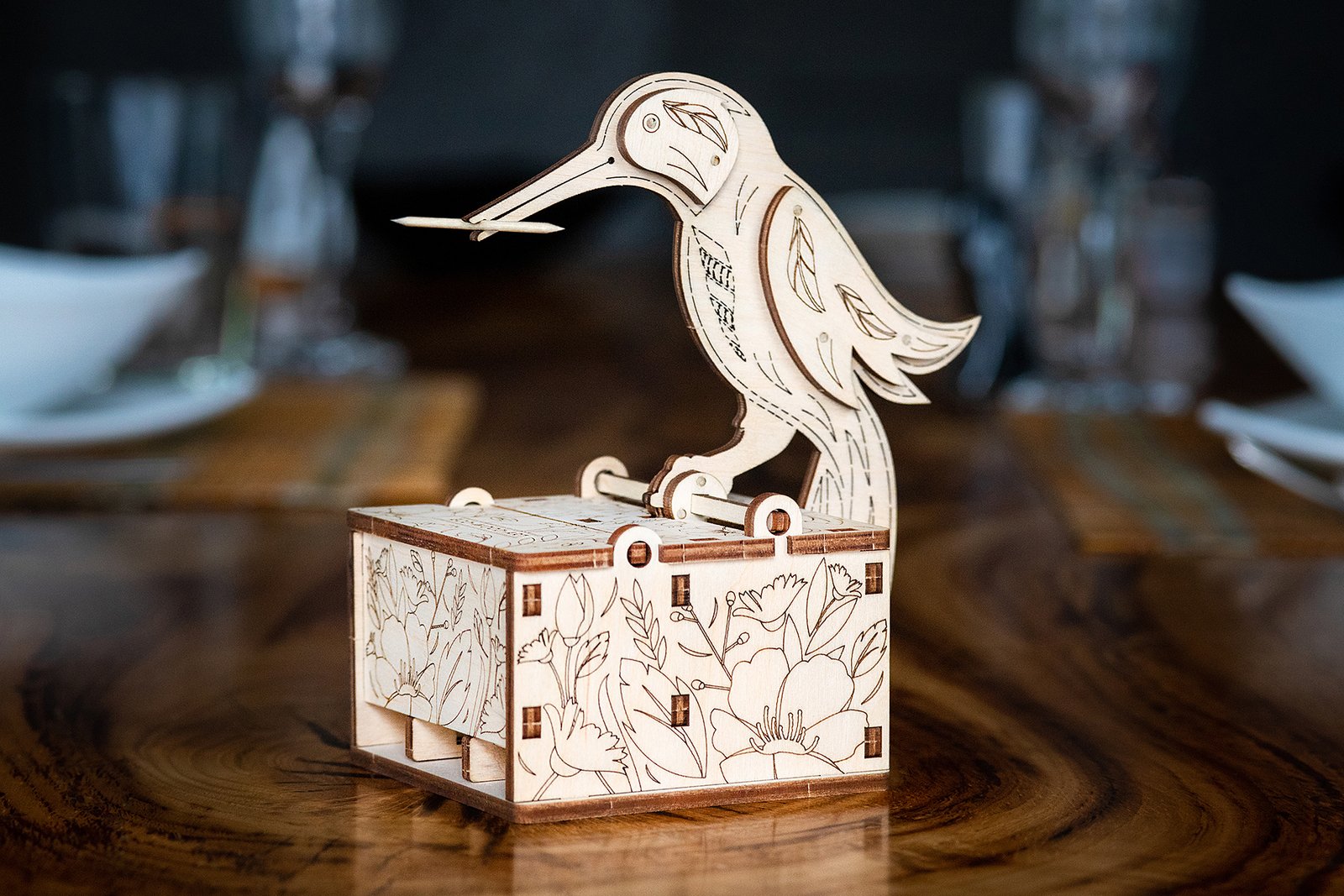 Konstruktors “Putns” – mehānisks modelis, kas paredzēts montāžai bez līmes. Noderīgs, ērts, stilīgs un oriģināls priekšmets jebkurai virtuvei vai svētku galdam. Modeli var izmantot interjera dizainam vai izmantot kā parastu zobu bakstāmo turētāju. Brīnišķīga dāvana, oriģināls kolekcionējams vai vienkārši noderīgs priekšmets mājai vai birojam, bāram, kafejnīcai vai restorānam!