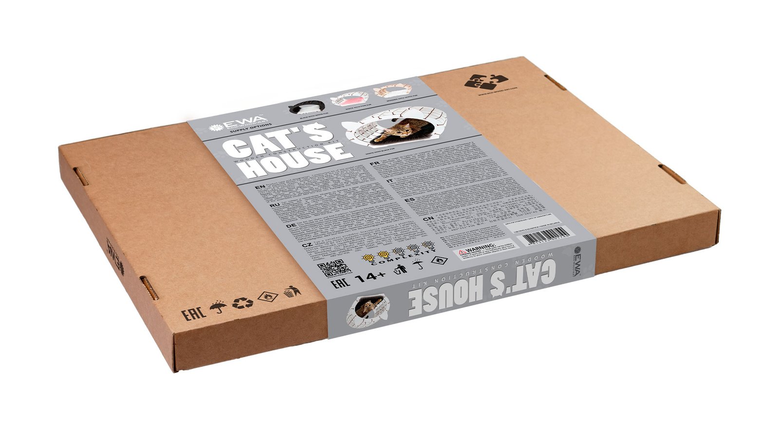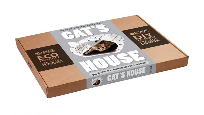The construction kit of the wooden house for a cat with a fur. Supplied in 4 color options: