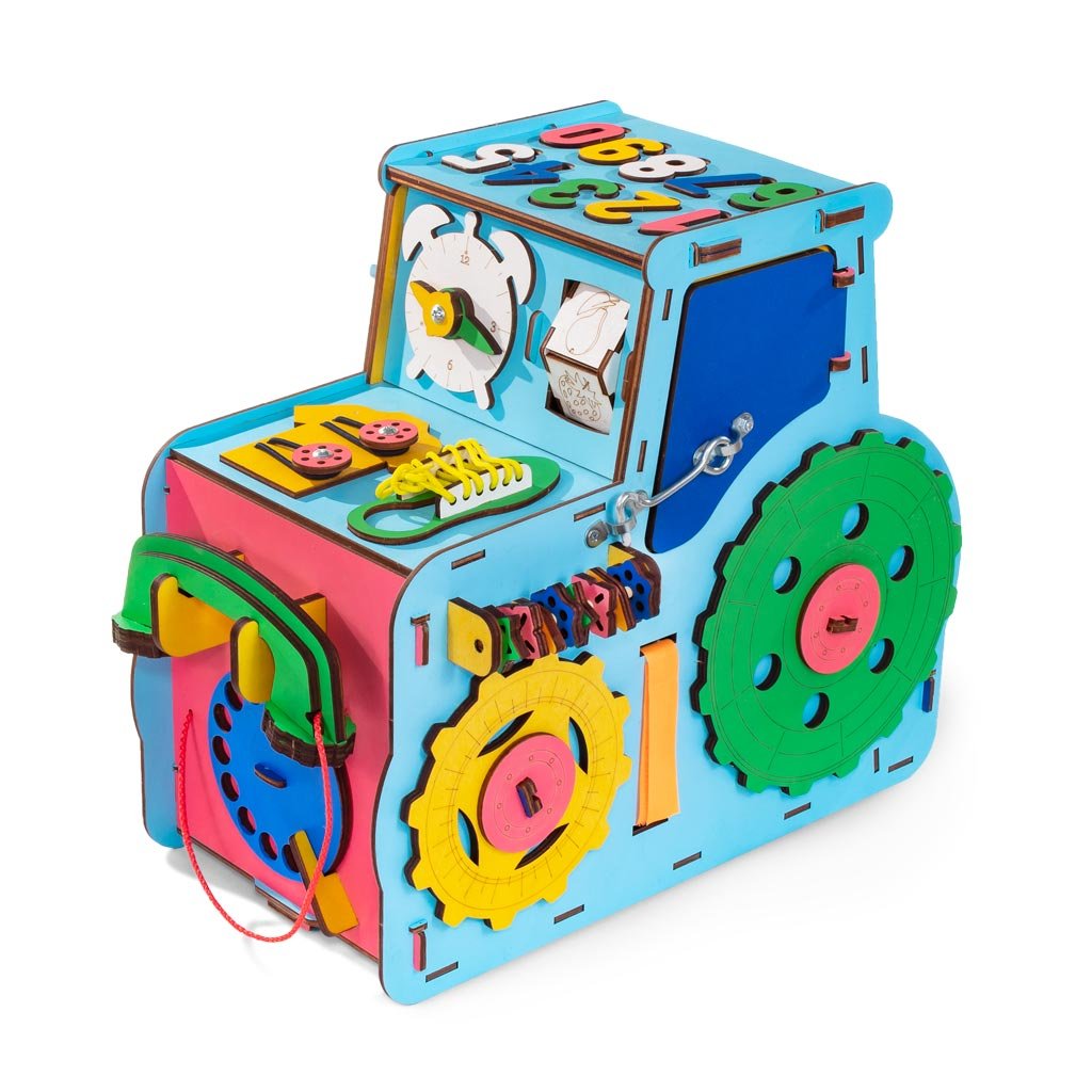 Игрушка развивающая Бизиборд — Трактор поможет вашим деткам увлекательно и, главное, безопасно исследовать этот мир. Это просто кладезь полезных и занимательных упражнений для малыша, которые способствуют развитию логического мышления, воображения и фантазии, усидчивости, а также помогают постепенно адаптироваться к бытовой среде. И самое главное, бизиборд незаменим для развития и тренировки мелкой моторики малышей.