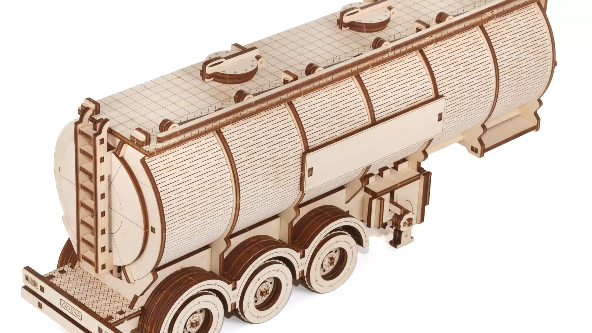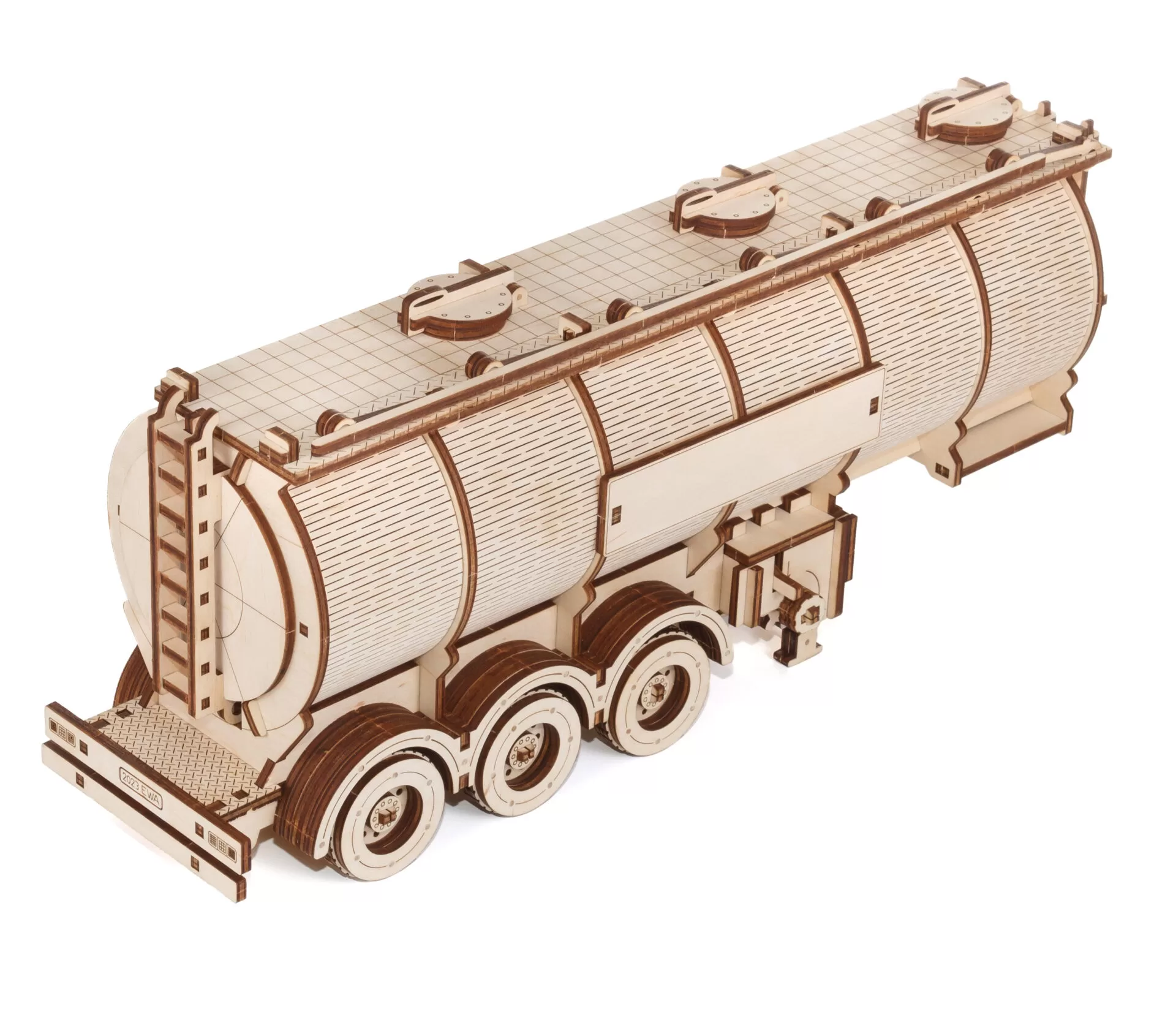 Высокодетализированный и реалистичный механический 3D-пазл прицепа-цистерны для грузовика EWA Roadking с чертами настоящего прицепа. Это уникальная и сложная головоломка, которая идеально подходит для тех, кто любит решать головоломки и увлекается грузовиками. Этот пазл, изготовленный из высококачественной фанеры, напоминает полуприцеп-цистерну, которую можно прикрепить к грузовику «Король дорог».